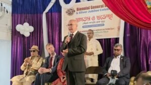 Reports on the association’s activities and finances were presented by General Secretary Sujith Chowdhury and Treasurer Biswajit Dey. Vice President Prashanta Dutta screened a documentary on the organisation’s history, while activist Bikram Banerjee curated an exhibition on Hindu genocide in the subcontinent. Youth Secretary Rajen Pal appealed to young members to take an active role in building a peaceful and responsible community. The celebration brought together community leaders and dignitaries, including freedom fighter Dewan Ghouse Sultan, Mohammad Abdur Rakib, Ripa Sultana Rakib, former mayor Jyotsna Islam, councillor Puspita Gupta, cultural activist Rumi Haque, Sujon Barua, Mesbah Uddin Echo, Barrister M Q Hasan, and journalist Batirul Haque Sardar.