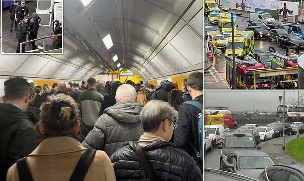 Rail passengers at Heathrow Terminal 2/3 station also faced long queues amid overcrowding.