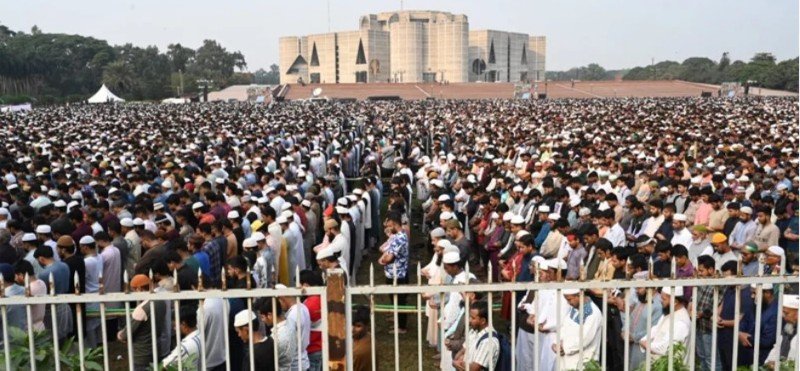 The janaza, administered by Hadi’s elder brother Abu Bakar Siddique,was held around 2:30PM at the South Plaza of the Jatiya Sangsad Bhaban.