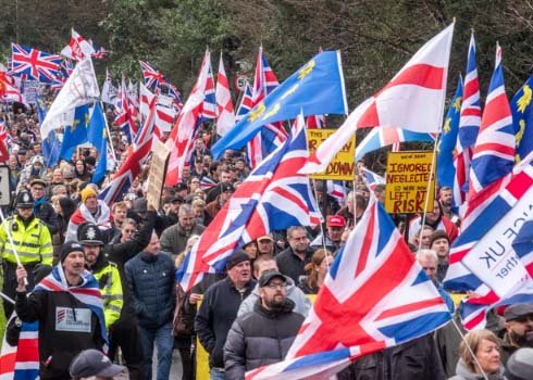 Amid a sea of union jacks and Saint George’s flags, those who had journeyed in for the march from another part of Sussex included Lynn Hall, who described herself as an “ordinary concerned mother of two”.