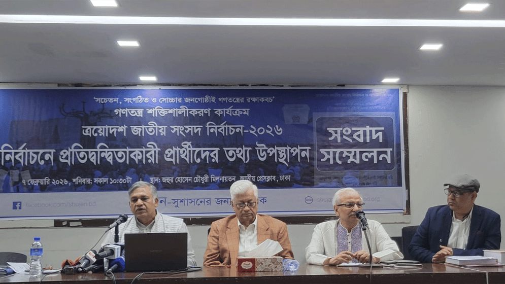 The findings were presented on Saturday at a press conference held by SHUJAN at the Jatiya Press Club, highlighting data on candidates contesting the election.