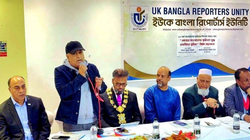 The guests who spoke at the discussion were popular actor Swadhin Khasru, veteran journalist and former president of UK Bangla Reporters Unity Matiar Chowdhury, former speaker Ahbab Hossain, editor of Swadesh Bidesh Batirul Haque Sardar, assistant editor of Janmat Musleh Uddin Ahmed, and president of Bangladesh Press Club UK Shakir Hossain.
