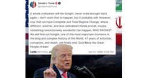 “Based on conversations with Prime Minister Shehbaz Sharif and Field Marshal Asim Munir, of Pakistan, and wherein they requested that I hold off the destructive force being sent tonight to Iran, and subject to the Islamic Republic of Iran agreeing to the COMPLETE, IMMEDIATE, and SAFE OPENING of the Strait of Hormuz, I agree to suspend the bombing and attack of Iran for a period of two weeks. This will be a double-sided CEASEFIRE!” Trump said.
